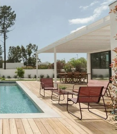 Si estás pensando en decorar tu terraza con azul, hay varias formas de hacerlo; a través de mobiliario, cojines, hamacas, o simplemente, si tienes una piscina, utiliza azul en los mosaicos o en las baldosas alrededor del agua para lograr un ambiente fresco y relajante.