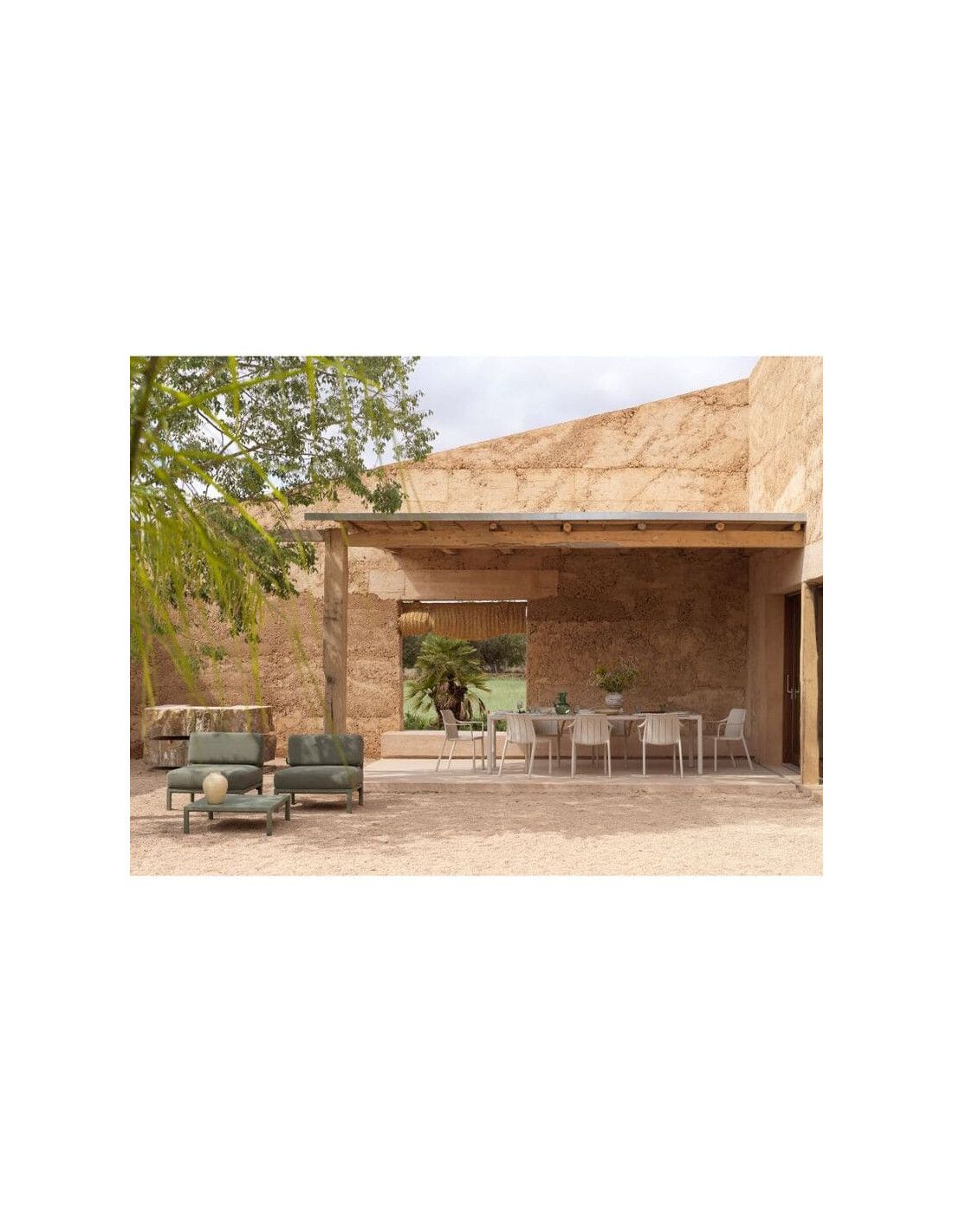 La Mesa tevere corda de Nardi es una pieza ideal para espacios exteriores, diseñada con un enfoque ecológico y un estilo moderno. Su tablero, fabricado en polipropileno virgen 100% reciclable con tratamiento anti-UV, presenta un acabado mate en el elegante color corda, que evoca tonos arena suaves y naturales, perfectos para integrarse en cualquier ambiente. La estructura de aluminio pintado tono sobre tono garantiza resistencia a los agentes atmosféricos, mientras que su diseño de líneas suaves y ausencia de esquinas afiladas aporta un toque de seguridad y estética contemporánea.