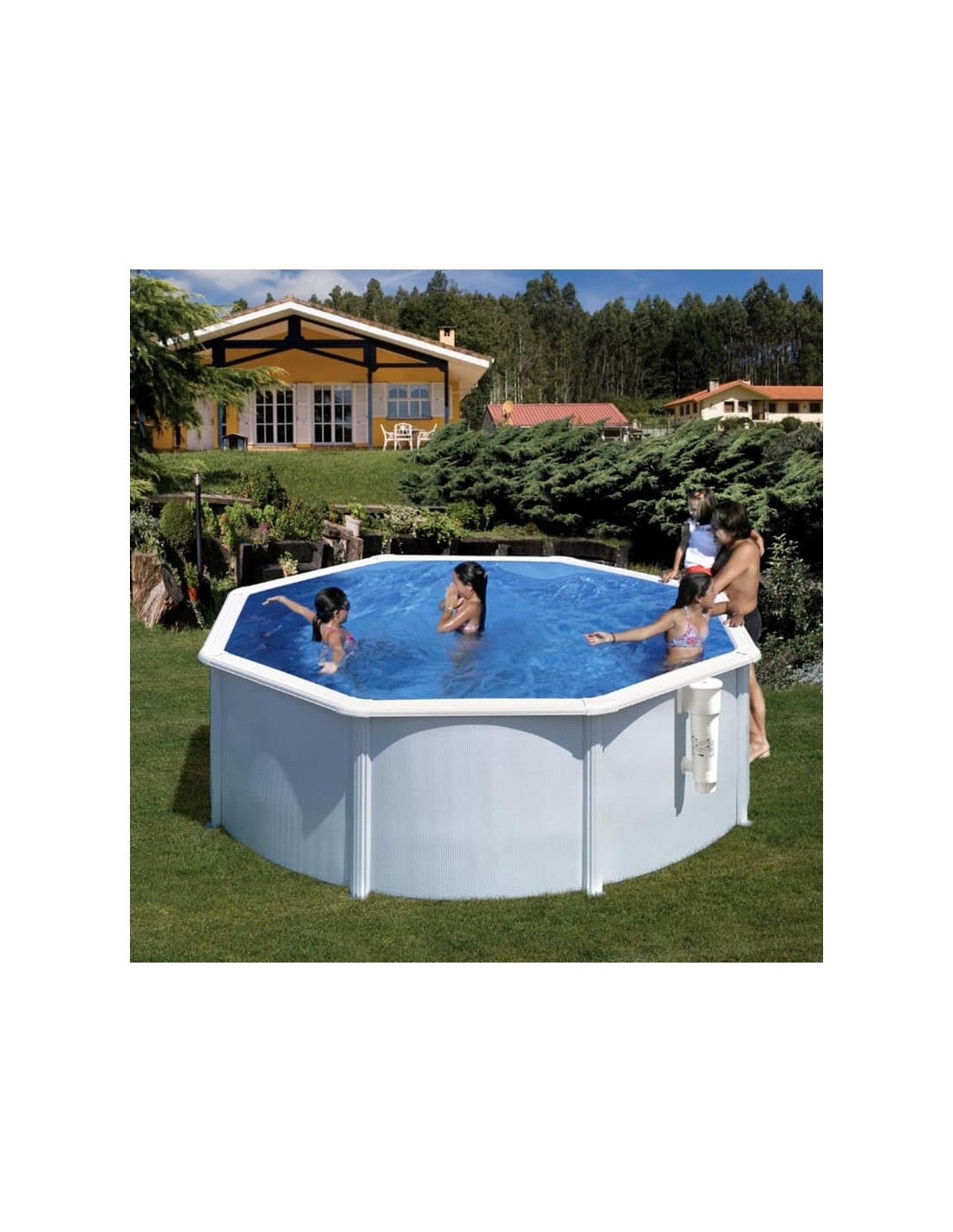Piscina elevada redonda chapa blanca Ø300x120cms. Gre KITPR303