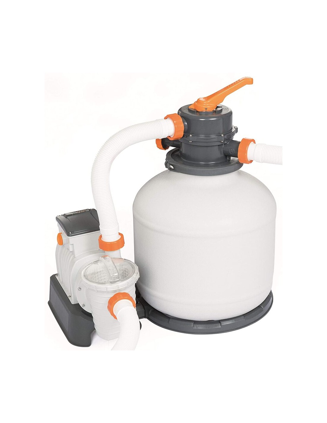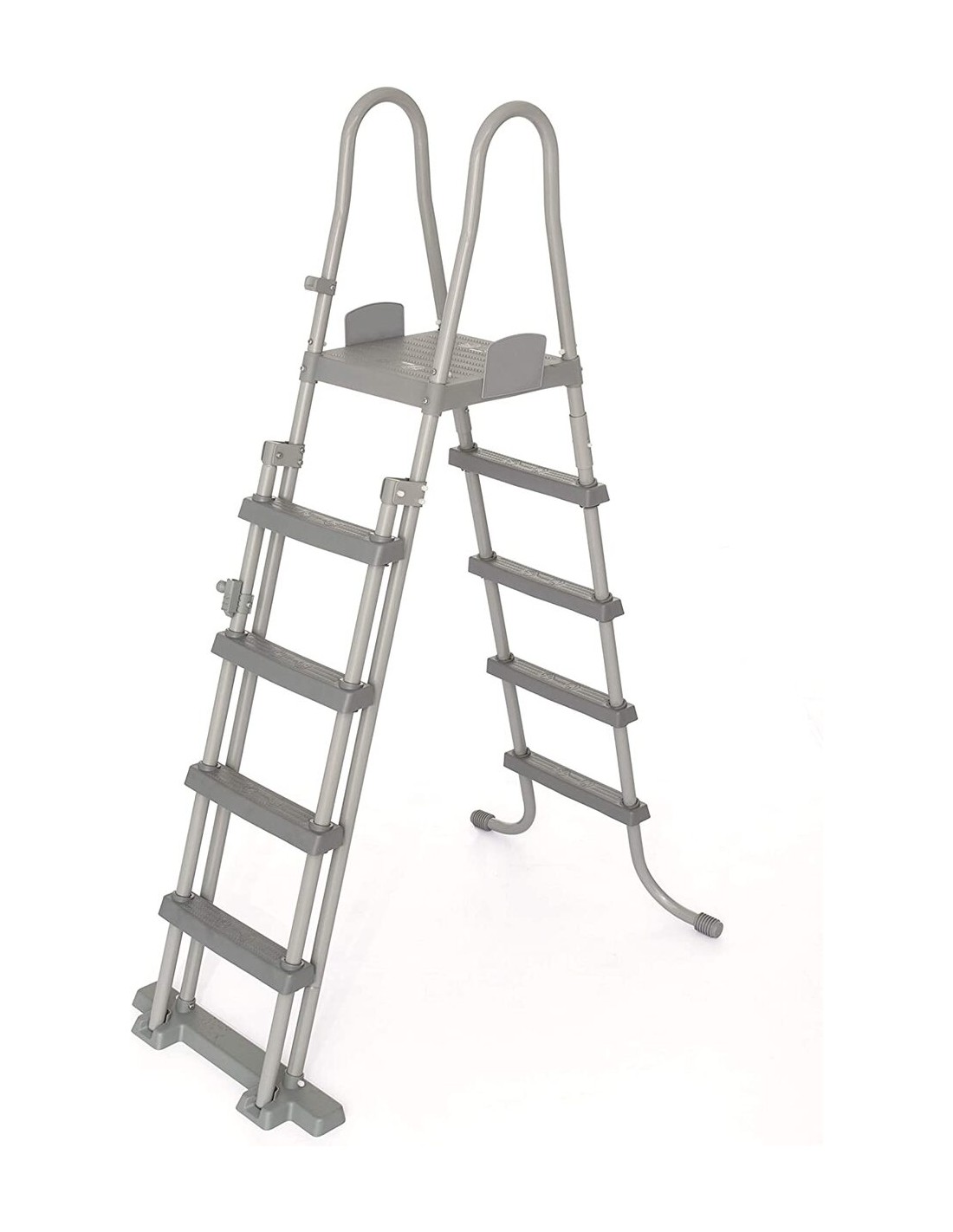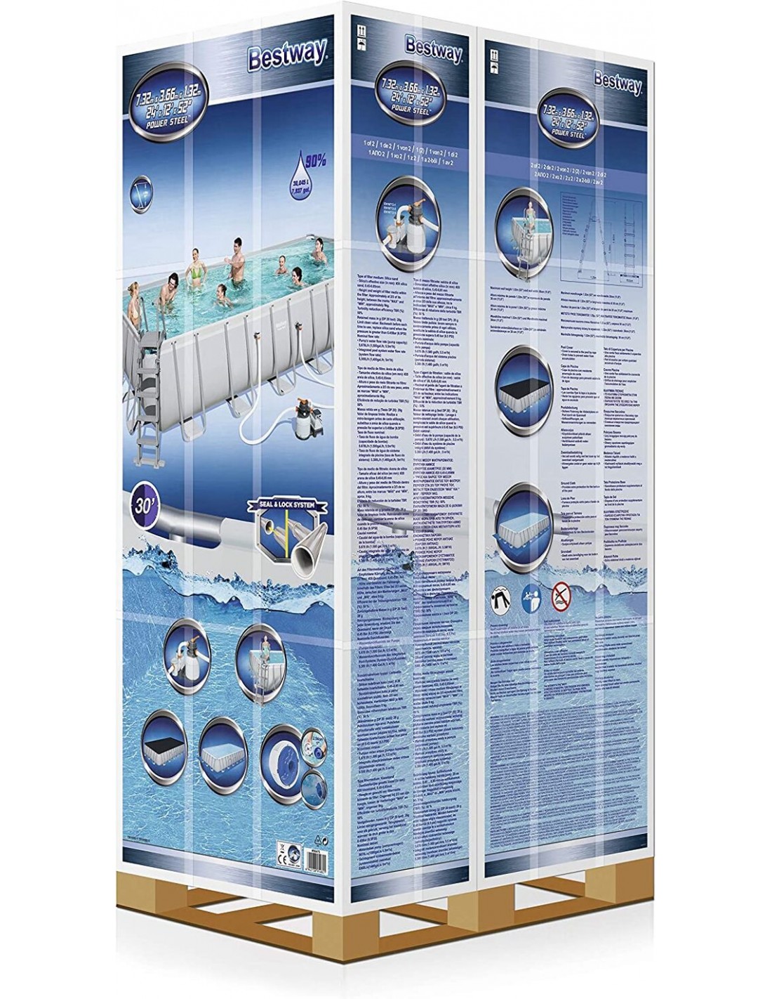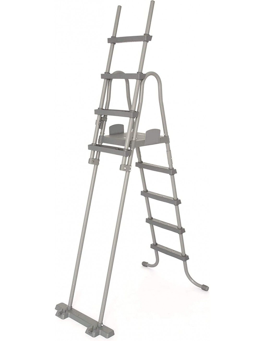 Piscina elevada desmontable de forma ovalada, con estructura tubular y lona con refuerzos anti pinchazos. El interior esta estampado con piedras prismáticas. Incluye escalera de de seguridad, filtro de limpieza y cobertor.